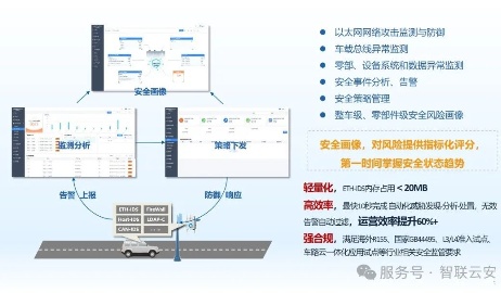 智联云安打造的E/E架构安全体系,从整车的网络空间维度出发,通过多重安全技术协同 ,从外到内多层次部署安全防线,从而满足车辆信息安全防护的纵深性、均衡性、完整性的要求。