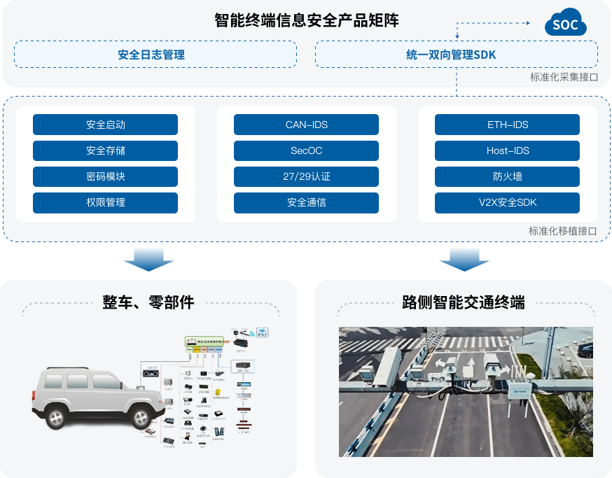 从网联通信、内部网络、系统运行三维度构建 “外防攻击、内御入侵、全程可溯” 防线,满足车联网 / 智能网联合规与安全需求。
